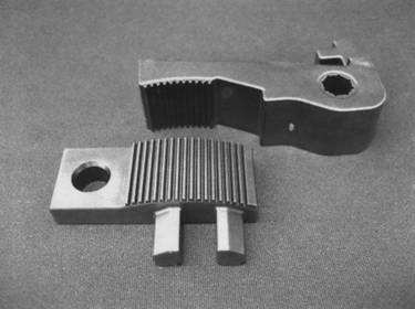 精石新材料長(zhǎng)期的技術(shù)攻關(guān)和儲(chǔ)備,現(xiàn)已可以通過(guò)客戶提供的鋼件、鑄件制品的使用工況、受力情況將相當(dāng)部分零件轉(zhuǎn)換為粉末冶金制品,從而達(dá)到為客戶降低采購(gòu)成本、生產(chǎn)成本的目的。我們現(xiàn)已成功的將德國(guó)瑪雅經(jīng)編機(jī)傳感鏈塊、電動(dòng)執(zhí)行機(jī)雙聯(lián)齒、大圓機(jī)三角等鋼件或鑄件制品轉(zhuǎn)換為粉末冶金制品,為客戶節(jié)約了15%-80%不等的采購(gòu)成本,并得到客戶的廣泛認(rèn)可。